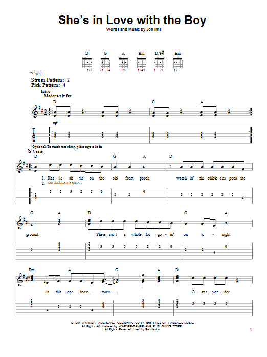 Download or print Trisha Yearwood She's In Love With The Boy sheet music, chords and digital score arranged for Easy Piano. This Country score includes 5 page(s).