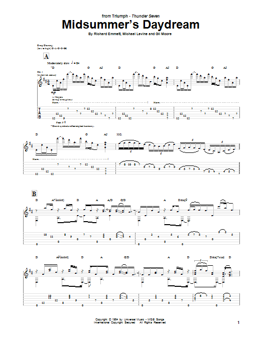 Download or print Triumph Midsummer's Daydream sheet music, chords and digital score arranged for Guitar Tab. This Pop score includes 3 page(s).