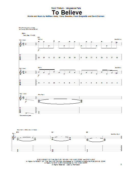 Download or print Trivium To Believe sheet music, chords and digital score arranged for Guitar Tab. This Metal score includes 9 page(s).