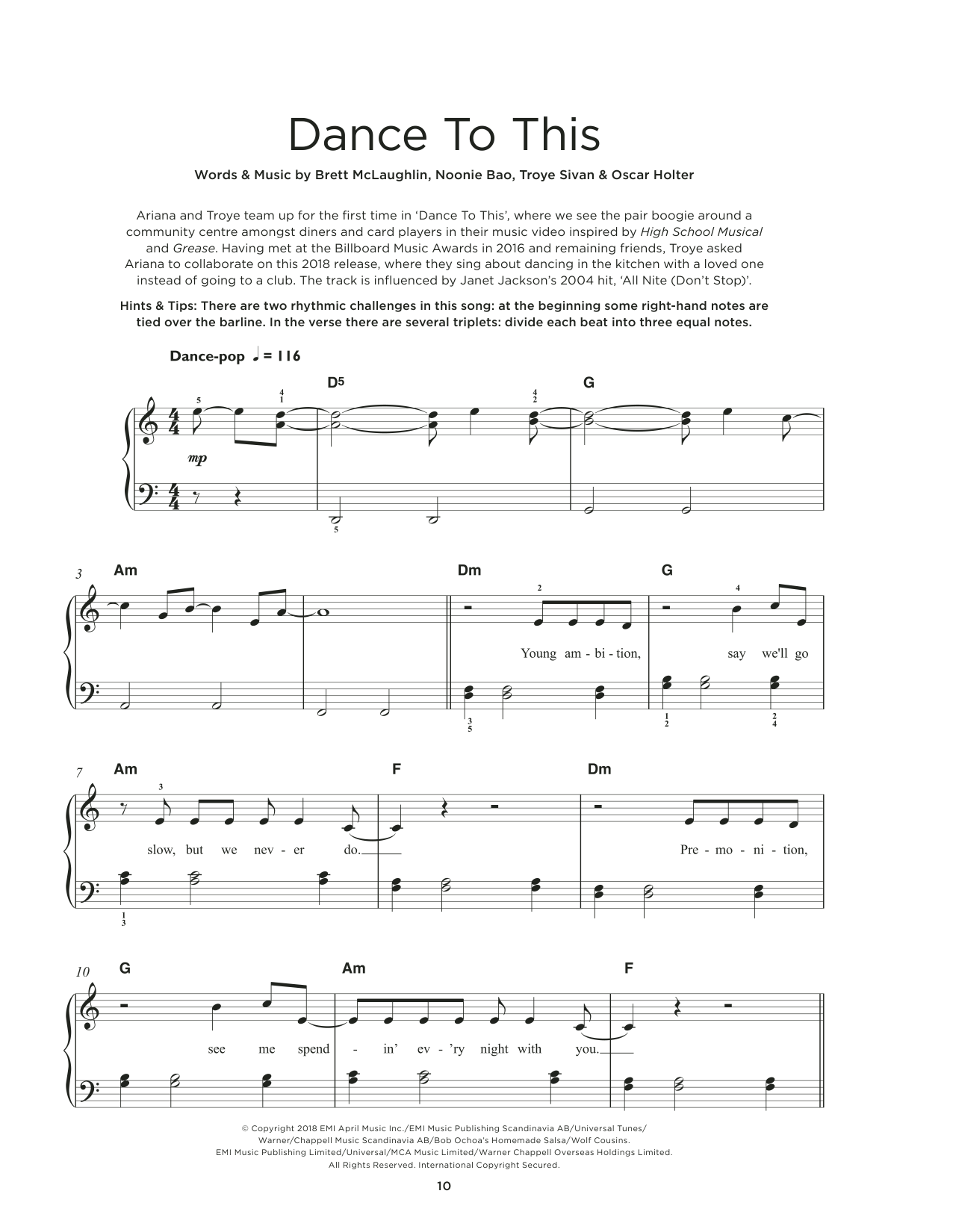 Download or print Troye Sivan Dance To This (feat. Ariana Grande) sheet music, chords and digital score arranged for Really Easy Piano. This Contemporary score includes 3 page(s).