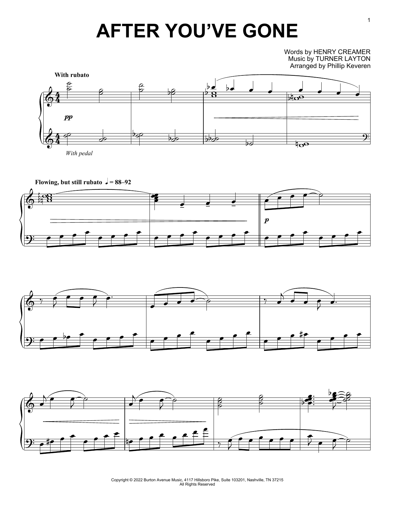 Download or print Turner Layton After You've Gone (arr. Phillip Keveren) sheet music, chords and digital score arranged for Piano Solo. This Jazz score includes 3 page(s).