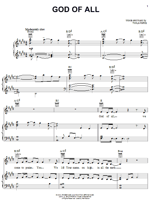 Download or print Twila Paris God Of All sheet music, chords and digital score arranged for Piano, Vocal & Guitar Chords (Right-Hand Melody). This Pop score includes 9 page(s).