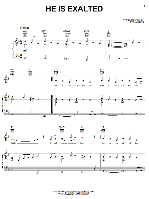 Download or print Twila Paris He Is Exalted sheet music, chords and digital score arranged for Piano & Vocal. This Christian score includes 3 page(s).