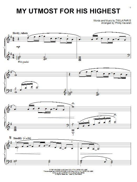 Download or print Twila Paris My Utmost For His Highest (arr. Phillip Keveren) sheet music, chords and digital score arranged for Piano Solo. This Christian score includes 3 page(s).