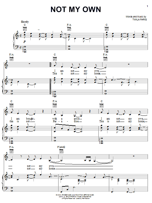 Download or print Twila Paris Not My Own sheet music, chords and digital score arranged for Piano, Vocal & Guitar Chords (Right-Hand Melody). This Pop score includes 5 page(s).