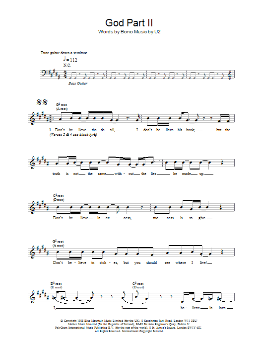 Download or print U2 God Part II sheet music, chords and digital score arranged for Lead Sheet / Fake Book. This Rock score includes 3 page(s).