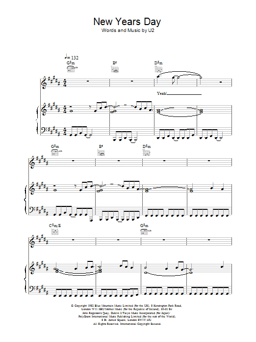 Download or print U2 New Year's Day sheet music, chords and digital score arranged for Guitar Tab (Single Guitar). This Pop score includes 12 page(s).