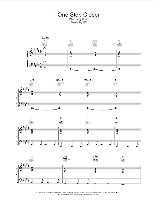 Download or print U2 One Step Closer sheet music, chords and digital score arranged for Piano, Vocal & Guitar Chords. This Pop score includes 4 page(s).