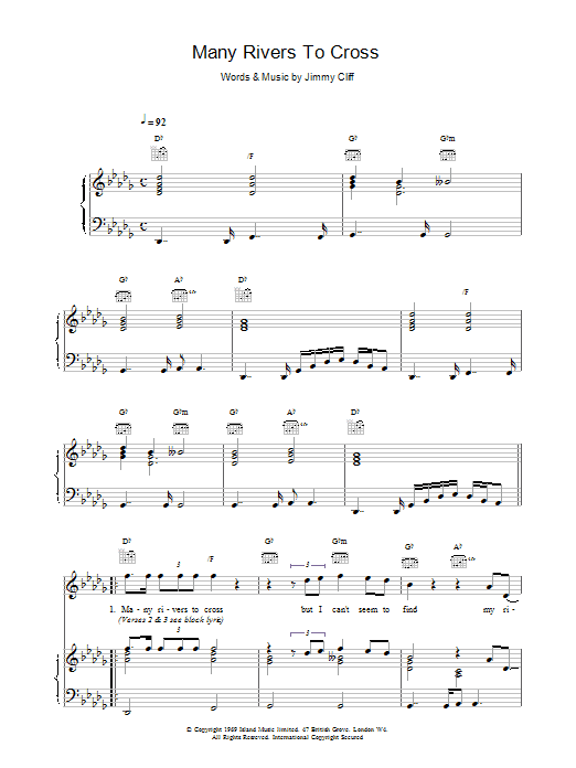 Download or print UB40 Many Rivers To Cross sheet music, chords and digital score arranged for Piano, Vocal & Guitar Chords. This Pop score includes 4 page(s).