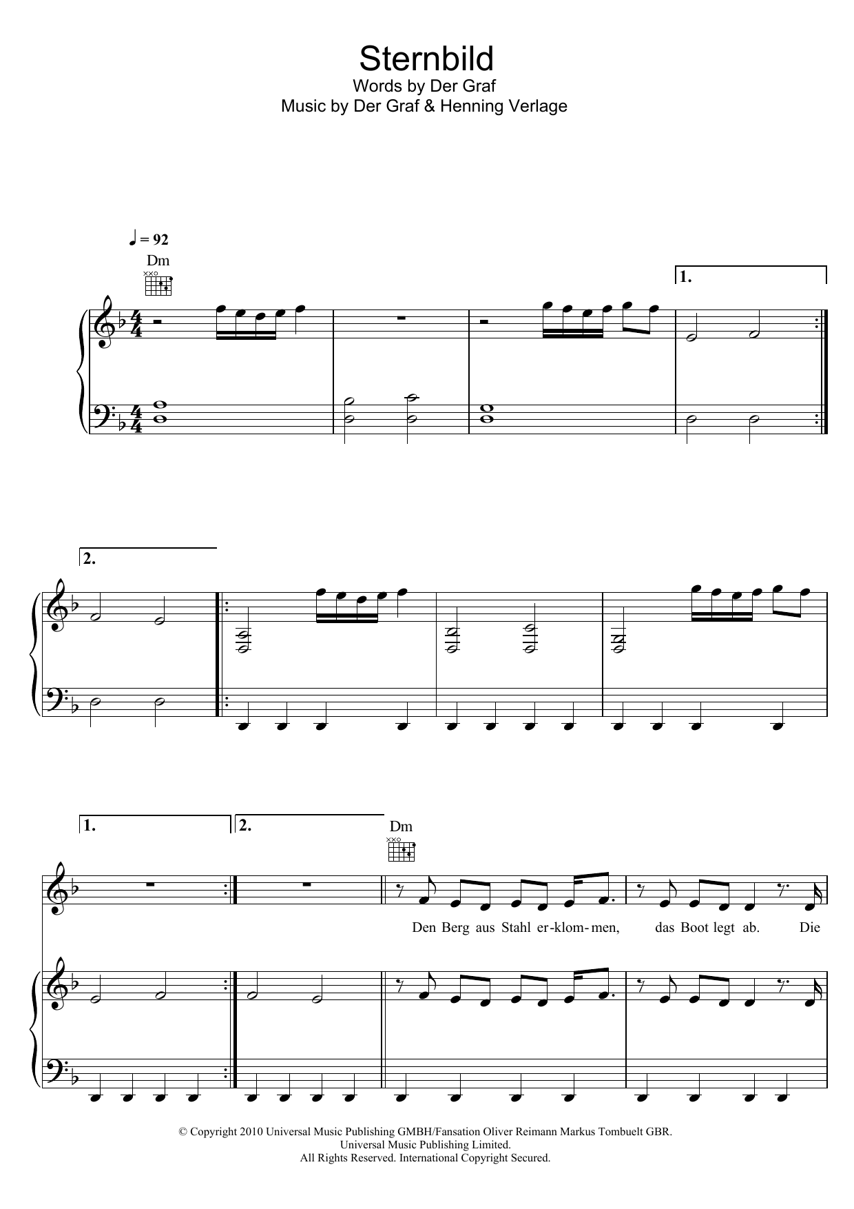 Download or print Unheilig Sternbild sheet music, chords and digital score arranged for Piano, Vocal & Guitar Chords. This Pop score includes 6 page(s).