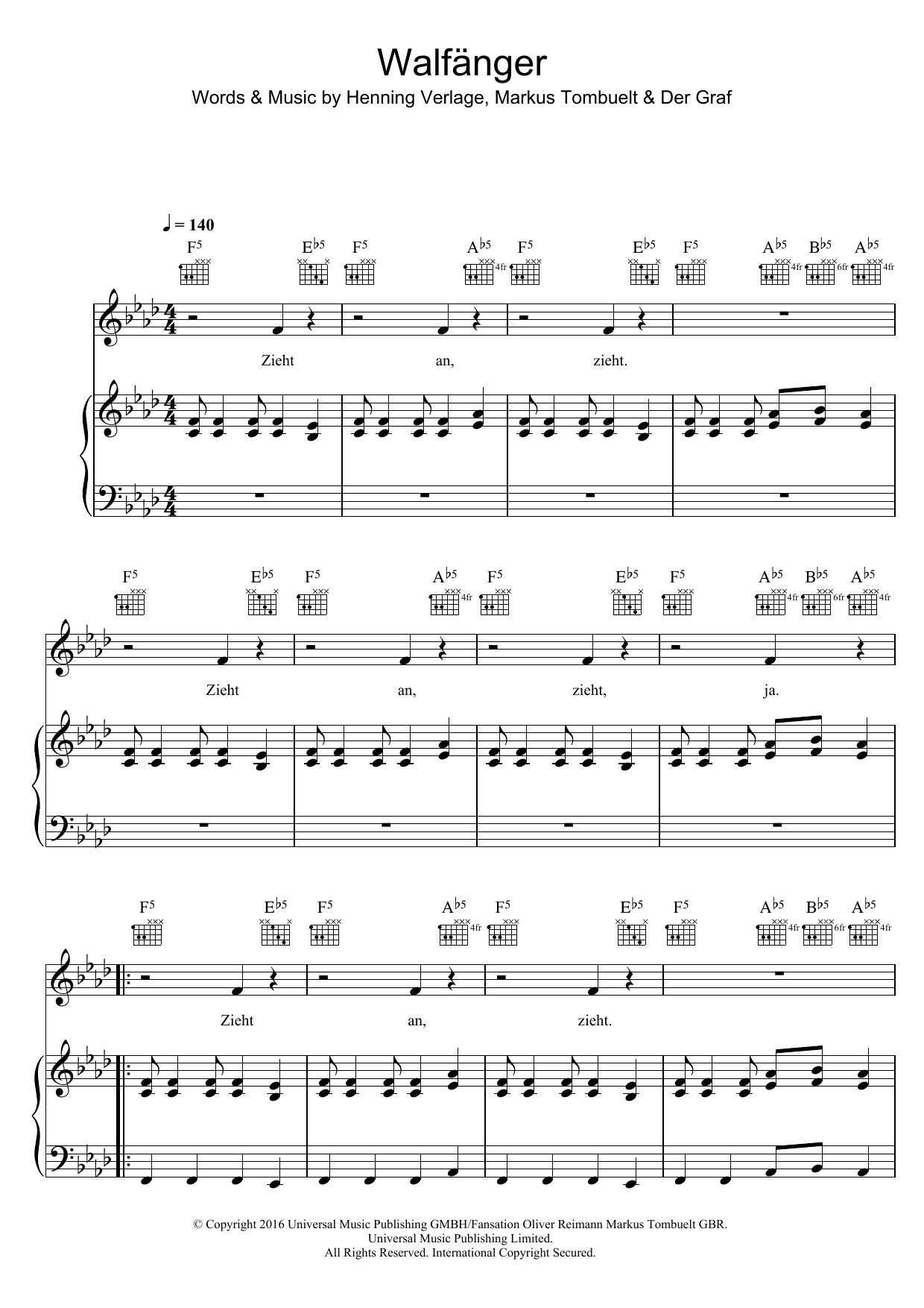 Download or print Unheilig Walfanger sheet music, chords and digital score arranged for Piano, Vocal & Guitar Chords. This Pop score includes 7 page(s).