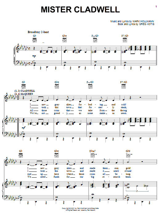 Download or print Urinetown (Musical) Mister Cladwell sheet music, chords and digital score arranged for Piano, Vocal & Guitar Chords (Right-Hand Melody). This Musical/Show score includes 6 page(s).