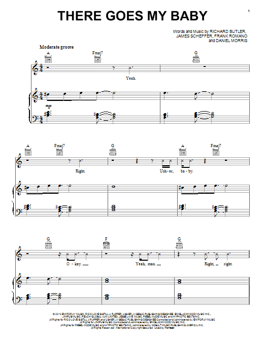 Download or print Usher There Goes My Baby sheet music, chords and digital score arranged for Piano, Vocal & Guitar Chords (Right-Hand Melody). This Pop score includes 6 page(s).