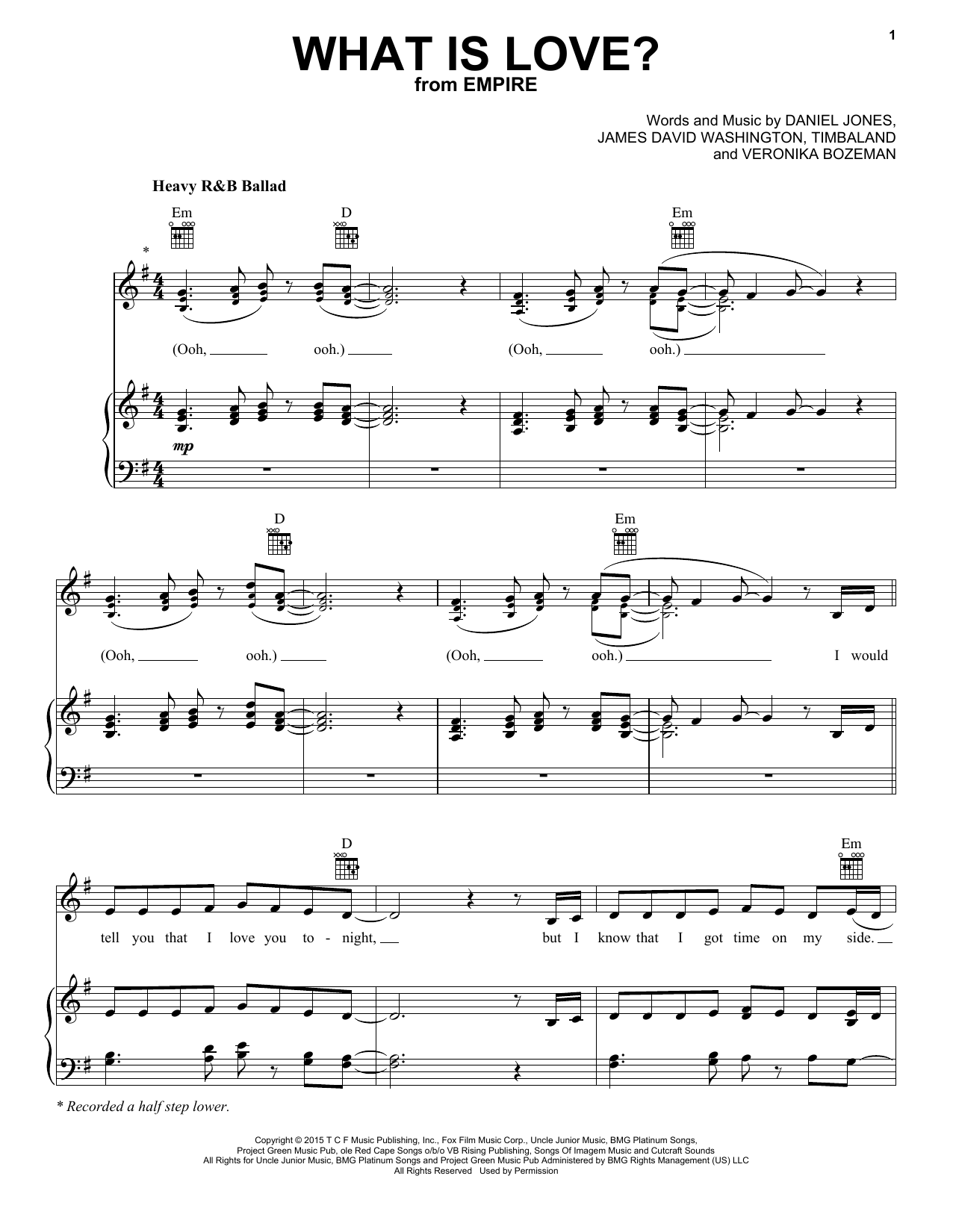 Download or print V/Veronika Bozeman What Is Love sheet music, chords and digital score arranged for Piano, Vocal & Guitar Chords (Right-Hand Melody). This Pop score includes 5 page(s).