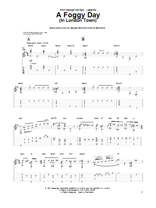 Download or print Van Eps, George A Foggy Day (In London Town) sheet music, chords and digital score arranged for Guitar Tab. This Jazz score includes 7 page(s).