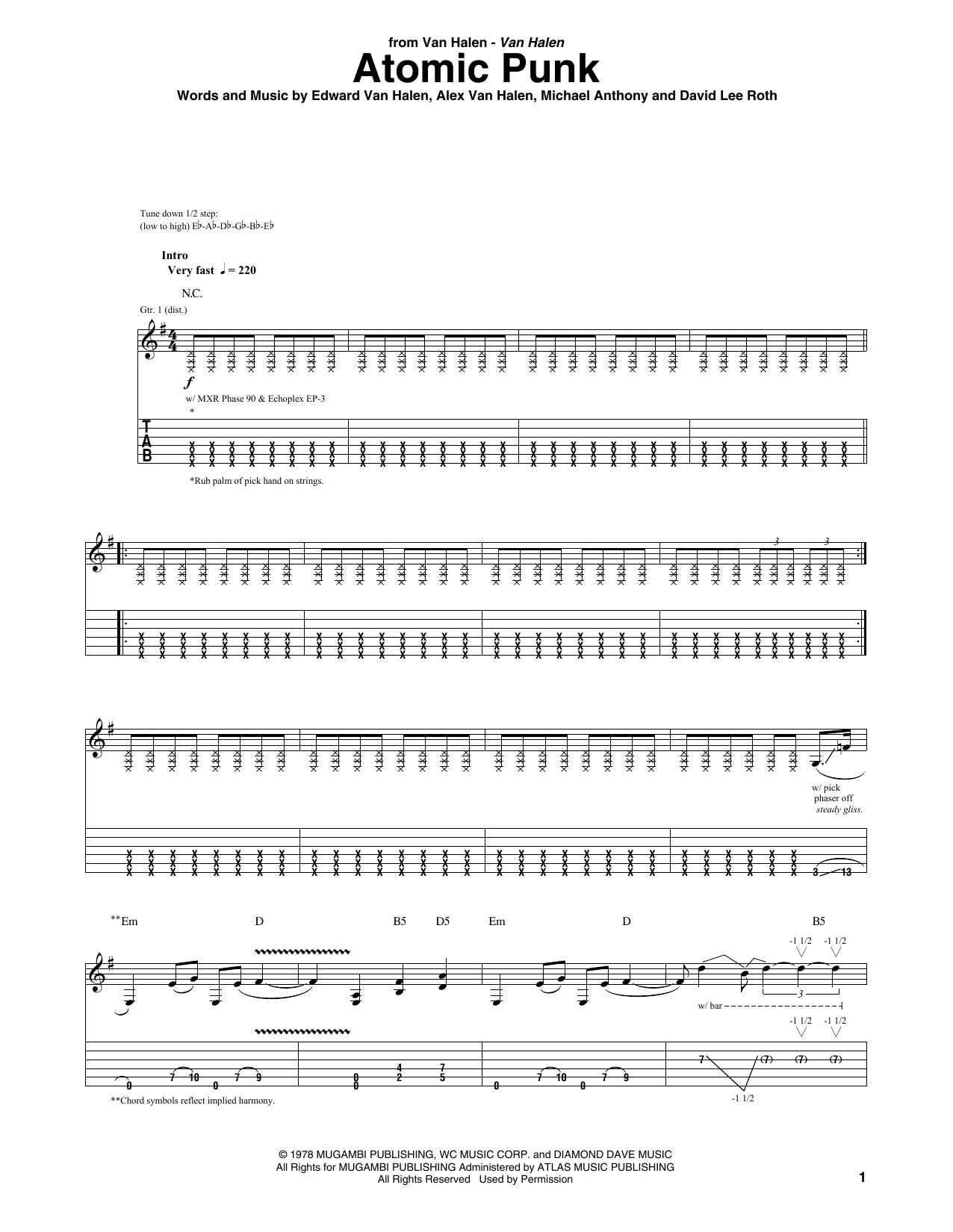 Download or print Van Halen Atomic Punk sheet music, chords and digital score arranged for Guitar Tab. This Metal score includes 7 page(s).