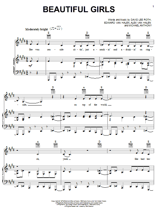 Download or print Van Halen Beautiful Girls sheet music, chords and digital score arranged for Guitar Tab (Single Guitar). This Metal score includes 12 page(s).