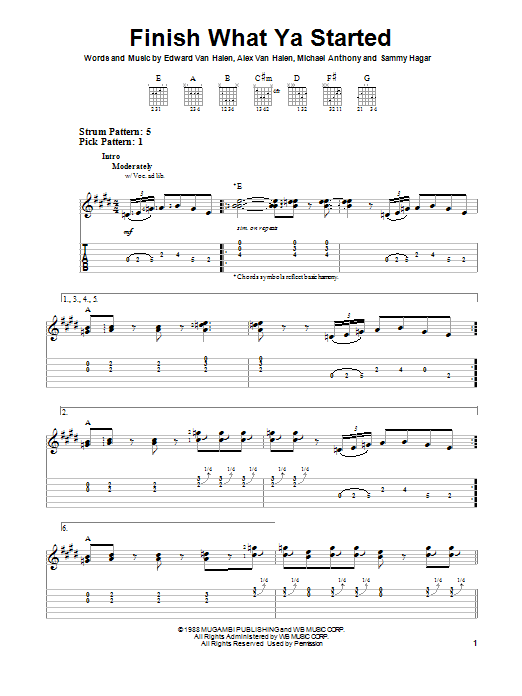 Download or print Van Halen Finish What Ya Started sheet music, chords and digital score arranged for Guitar Tab (Single Guitar). This Pop score includes 13 page(s).