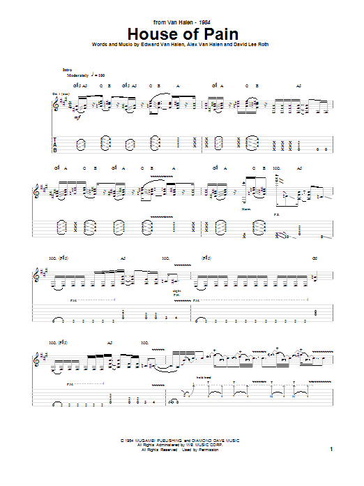 Download or print Van Halen House Of Pain sheet music, chords and digital score arranged for Guitar Tab. This Pop score includes 10 page(s).