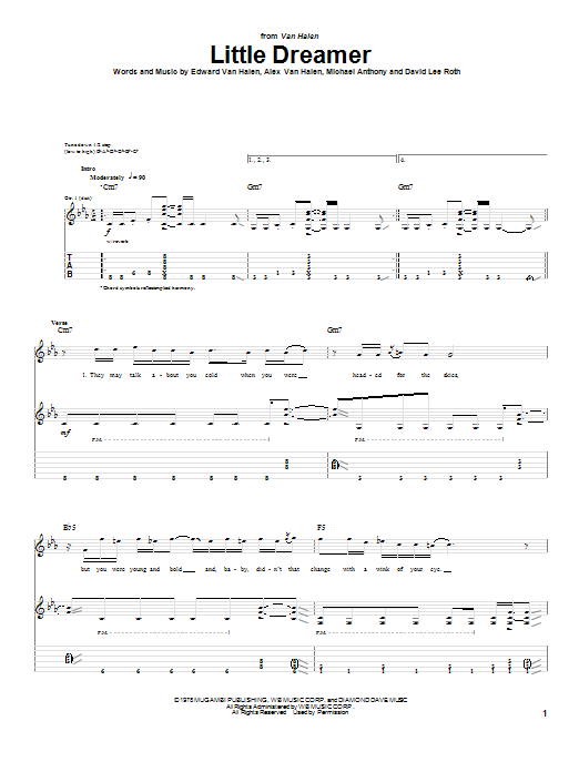 Download or print Van Halen Little Dreamer sheet music, chords and digital score arranged for Guitar Tab. This Metal score includes 6 page(s).