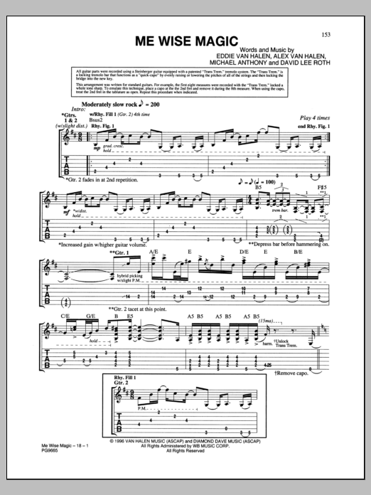 Download or print Van Halen Me Wise Magic sheet music, chords and digital score arranged for Guitar Tab. This Pop score includes 18 page(s).
