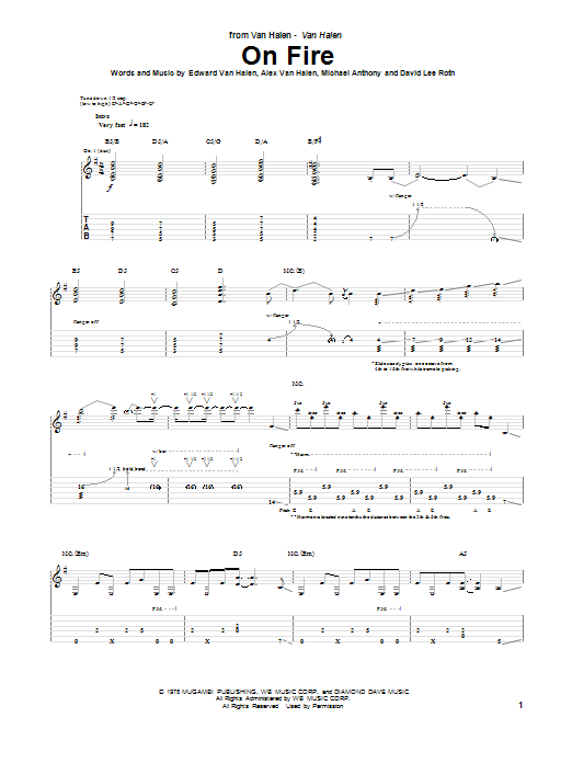 Download or print Van Halen On Fire sheet music, chords and digital score arranged for Guitar Tab. This Pop score includes 7 page(s).