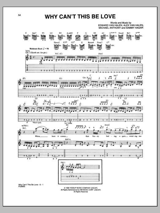 Download or print Van Halen Why Can't This Be Love sheet music, chords and digital score arranged for Guitar Tab. This Pop score includes 11 page(s).