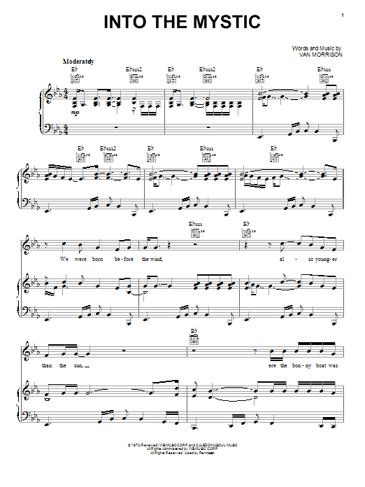 Download or print Van Morrison Into The Mystic sheet music, chords and digital score arranged for Easy Piano. This Rock score includes 6 page(s).