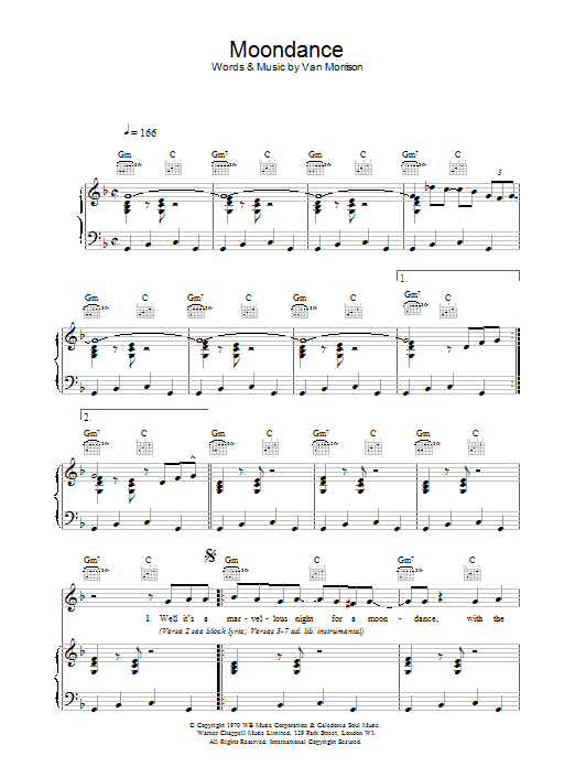 Download or print Van Morrison Moondance sheet music, chords and digital score arranged for Lead Sheet / Fake Book. This Jazz score includes 1 page(s).