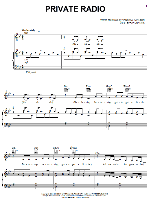 Download or print Vanessa Carlton Private Radio sheet music, chords and digital score arranged for Piano, Vocal & Guitar Chords (Right-Hand Melody). This Pop score includes 8 page(s).