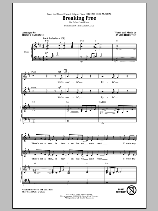 Quick facts Breaking Free (from High School Musical) (arr. Roger Emerson) about digital sheet music