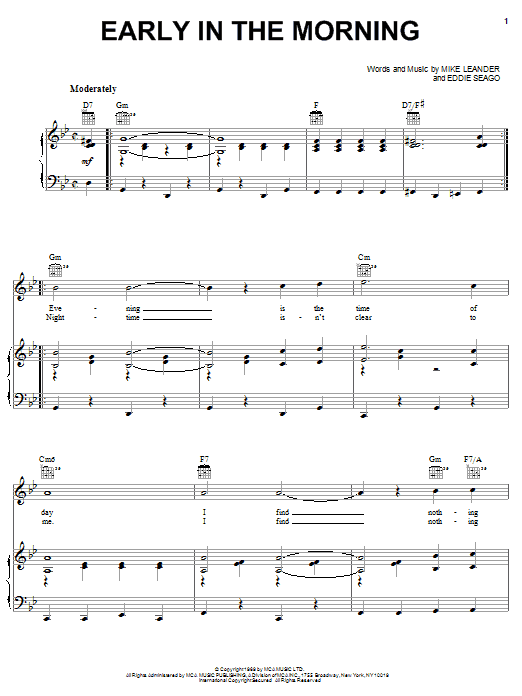 Download or print Vanity Fare Early In The Morning sheet music, chords and digital score arranged for Lead Sheet / Fake Book. This Pop score includes 1 page(s).