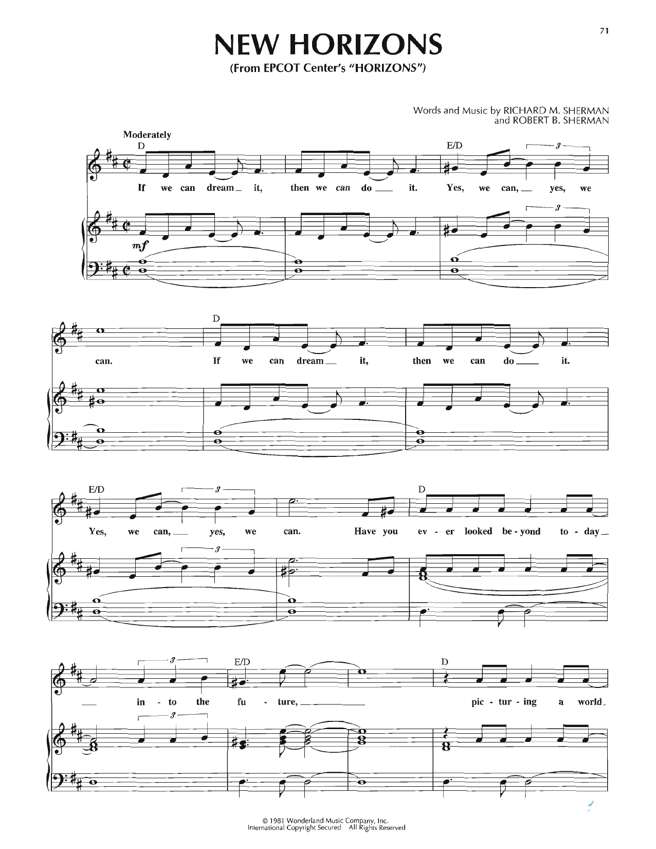 Download or print Various New Horizons sheet music, chords and digital score arranged for Piano, Vocal & Guitar Chords (Right-Hand Melody). This Children score includes 4 page(s).