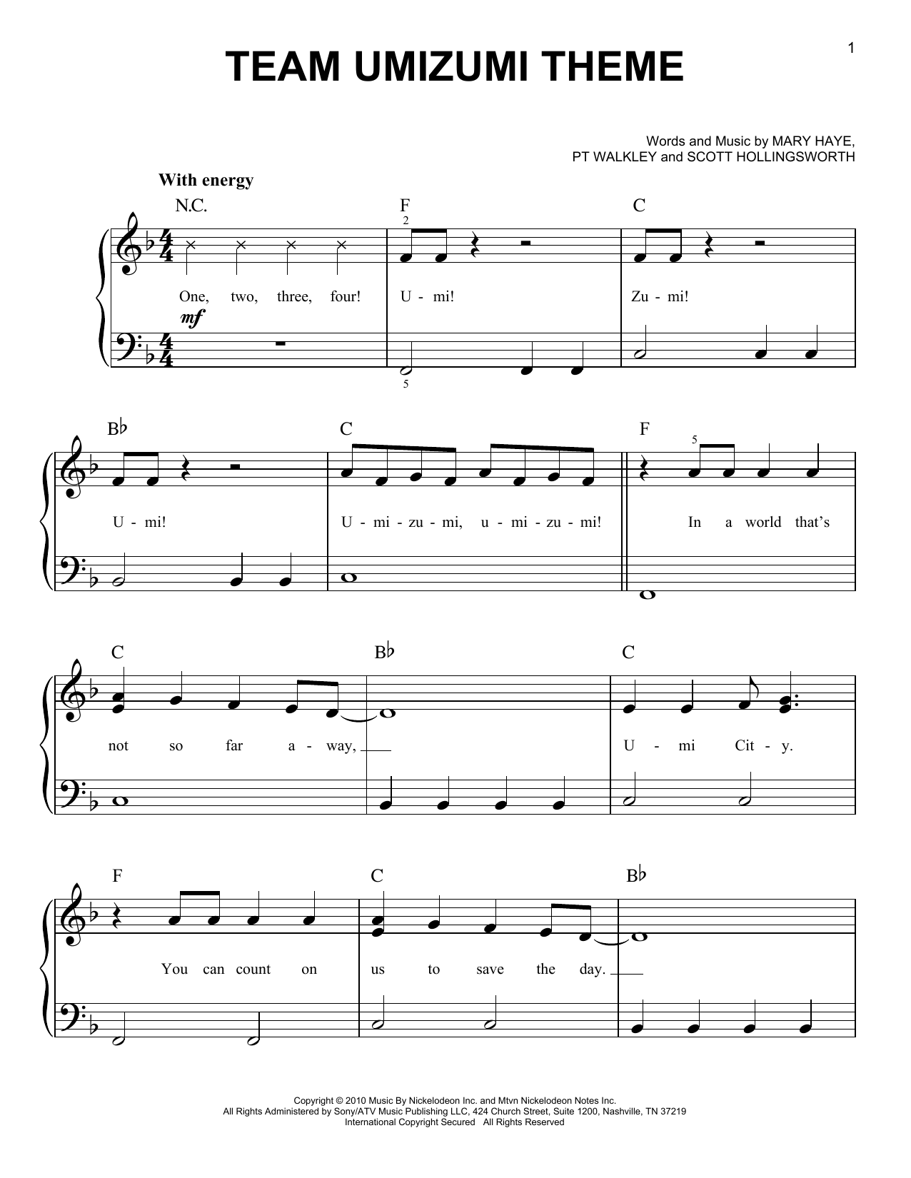 Download or print Various Team Umizumi Theme sheet music, chords and digital score arranged for Easy Piano. This Children score includes 3 page(s).