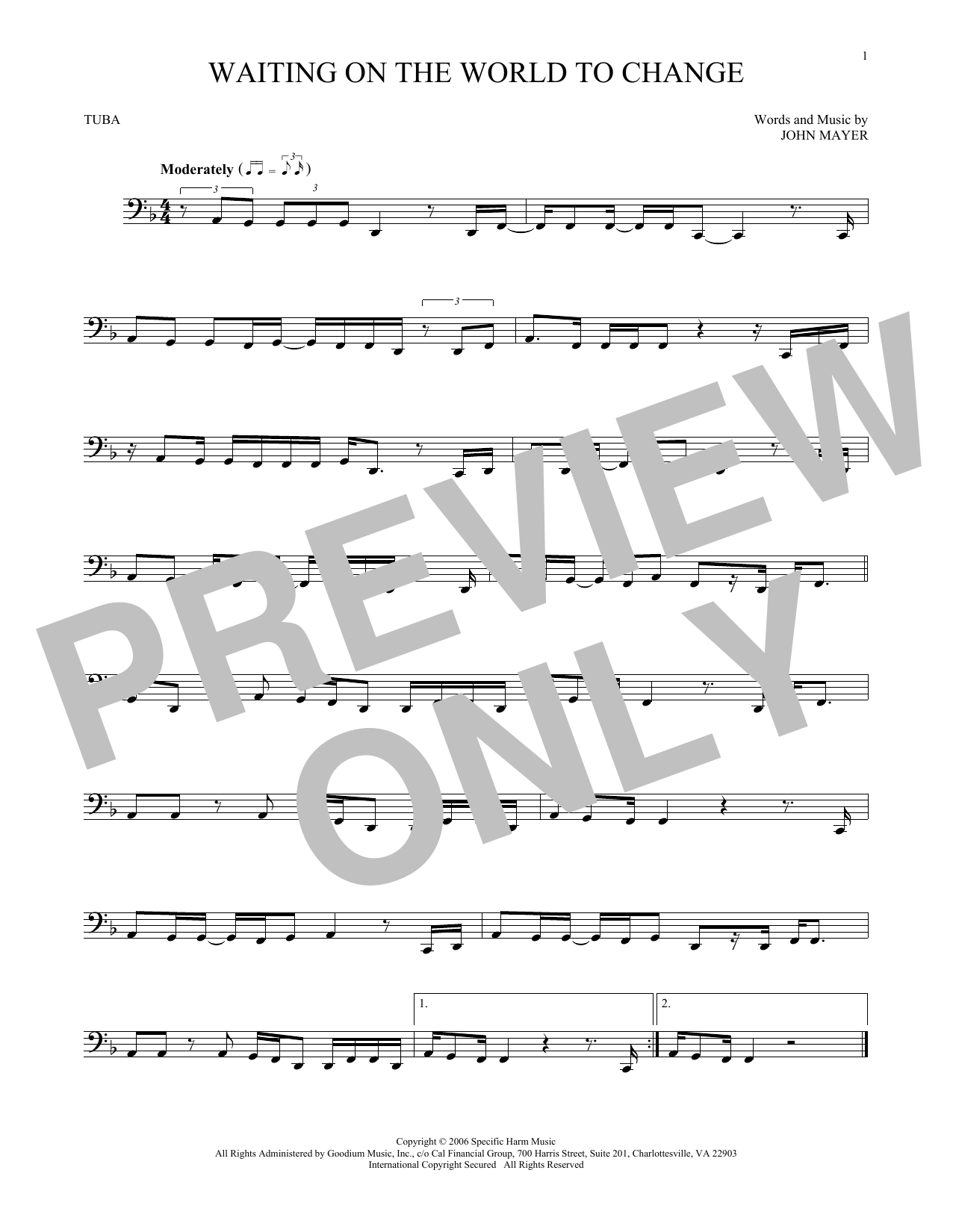 Download or print Various Waiting On The World To Change sheet music, chords and digital score arranged for Tuba Solo. This Pop score includes 1 page(s).