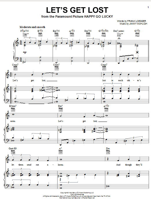 Download or print Vaughn Monroe Let's Get Lost sheet music, chords and digital score arranged for Piano, Vocal & Guitar Chords (Right-Hand Melody). This Jazz score includes 3 page(s).