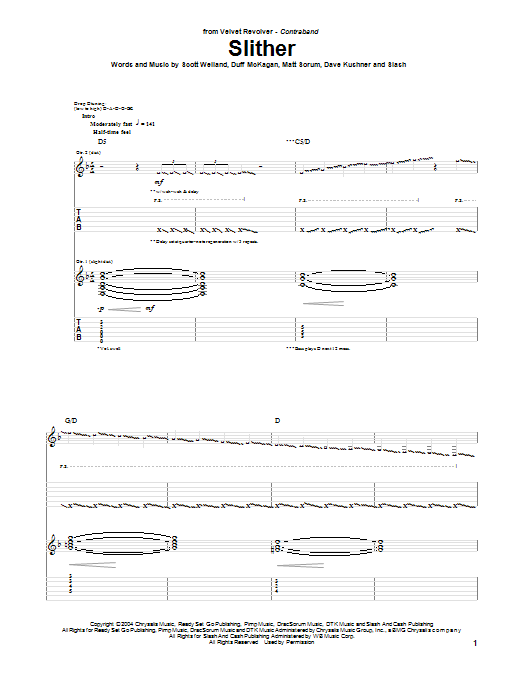 Download or print Velvet Revolver Slither sheet music, chords and digital score arranged for Piano, Vocal & Guitar Chords (Right-Hand Melody). This Metal score includes 7 page(s).
