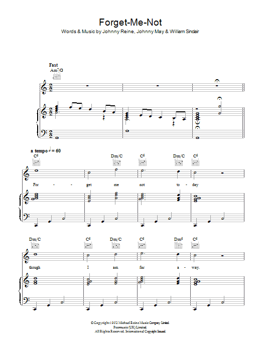 Download or print Vera Lynn Forget-Me-Not sheet music, chords and digital score arranged for Piano, Vocal & Guitar Chords. This Standards score includes 5 page(s).