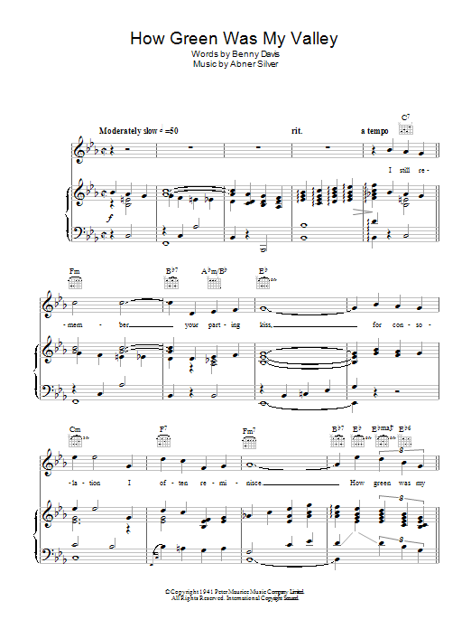 Download or print Vera Lynn How Green Was My Valley sheet music, chords and digital score arranged for Piano, Vocal & Guitar Chords. This Standards score includes 4 page(s).