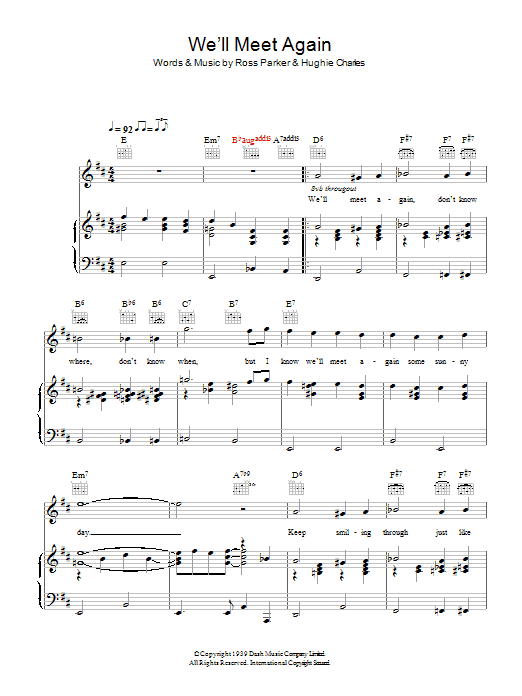 Download or print Vera Lynn We'll Meet Again sheet music, chords and digital score arranged for Guitar Chords/Lyrics. This Pop score includes 2 page(s).