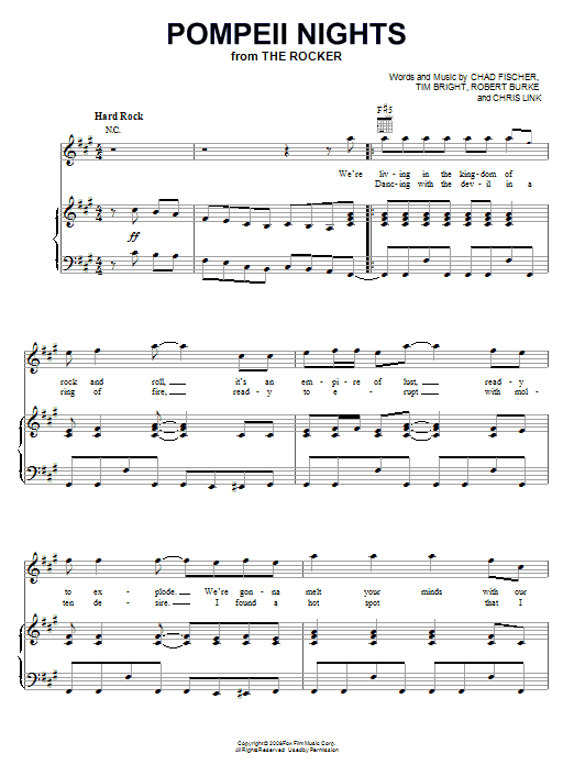 Download or print Vesuvius Pompeii Nights sheet music, chords and digital score arranged for Piano, Vocal & Guitar Chords (Right-Hand Melody). This Film/TV score includes 5 page(s).