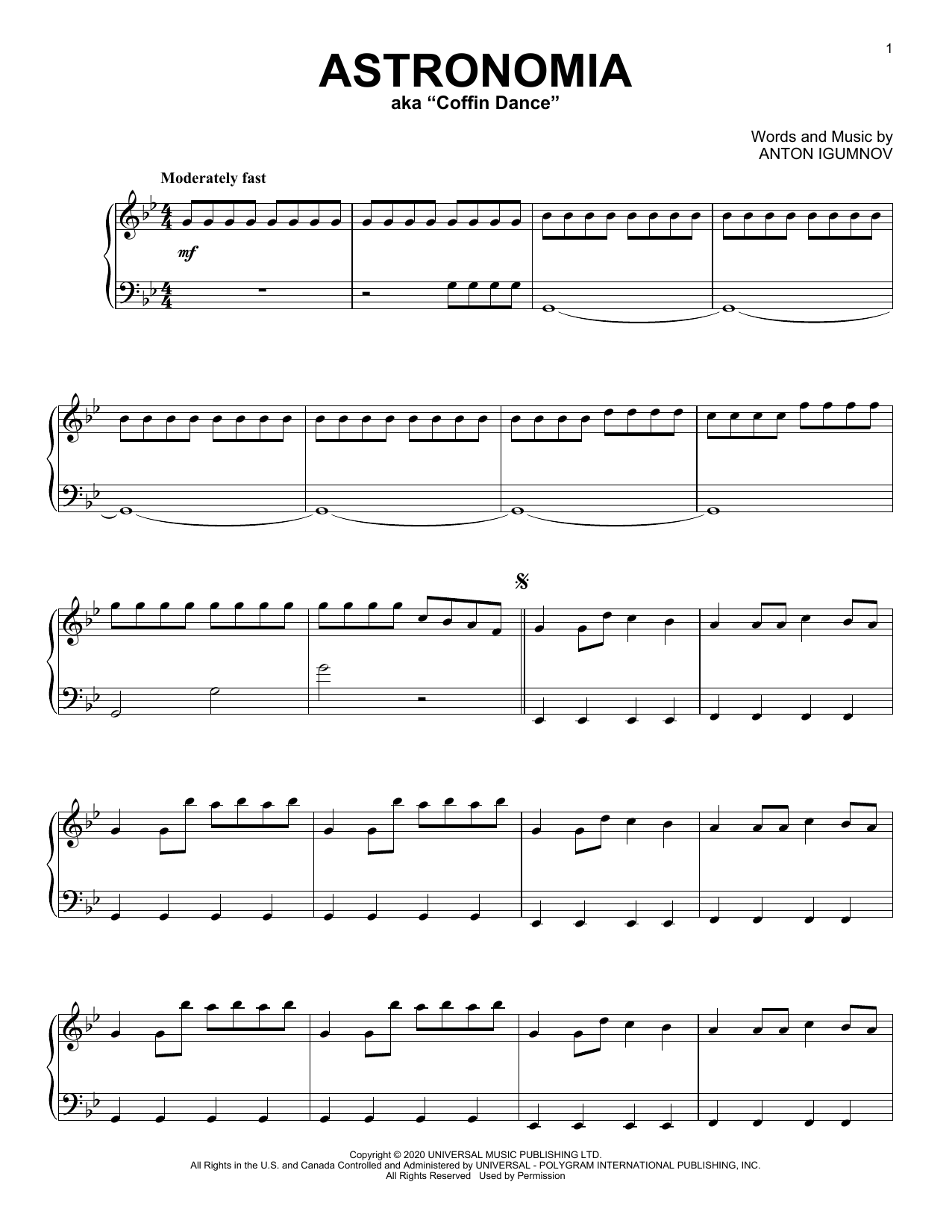 Download or print Vicetone & Tony Igy Astronomia sheet music, chords and digital score arranged for Piano Solo. This Pop score includes 3 page(s).