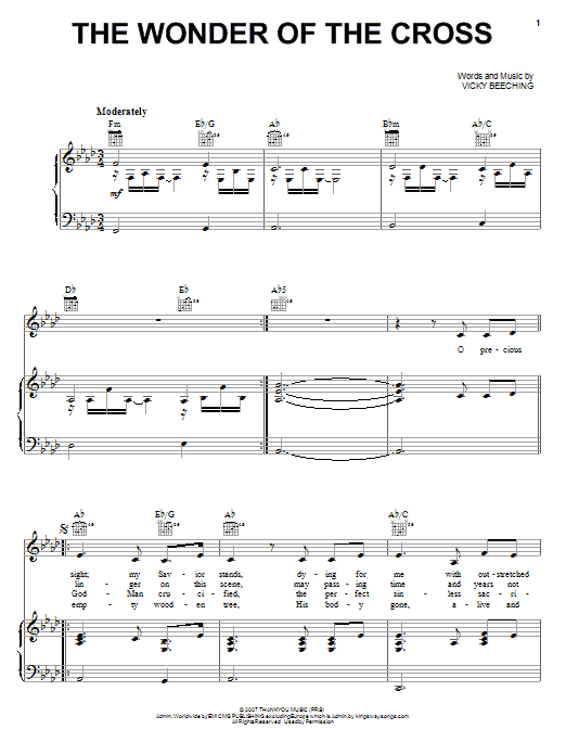 Download or print Vicky Beeching The Wonder Of The Cross sheet music, chords and digital score arranged for Piano, Vocal & Guitar Chords (Right-Hand Melody). This Christian score includes 6 page(s).