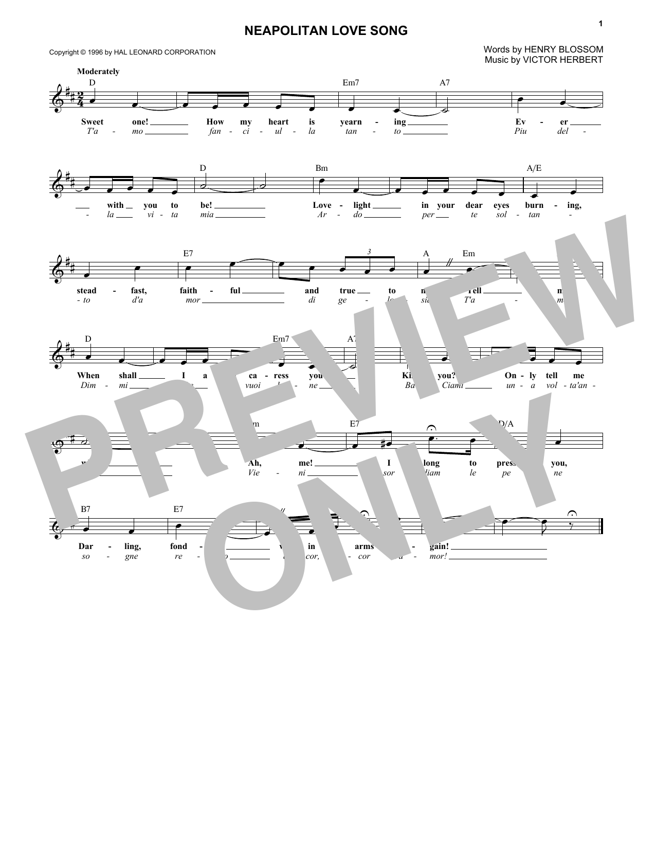 Download or print Victor Herbert Neapolitan Love Song sheet music, chords and digital score arranged for Lead Sheet / Fake Book. This Pop score includes 1 page(s).