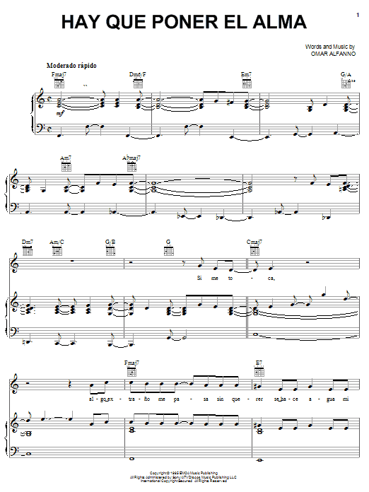 Download or print Victor Manuelle Hay Que Poner El Alma sheet music, chords and digital score arranged for Piano, Vocal & Guitar Chords (Right-Hand Melody). This Latin score includes 6 page(s).