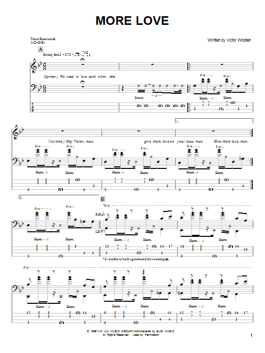 Download or print Victor Wooten More Love sheet music, chords and digital score arranged for Bass Guitar Tab. This Jazz score includes 6 page(s).