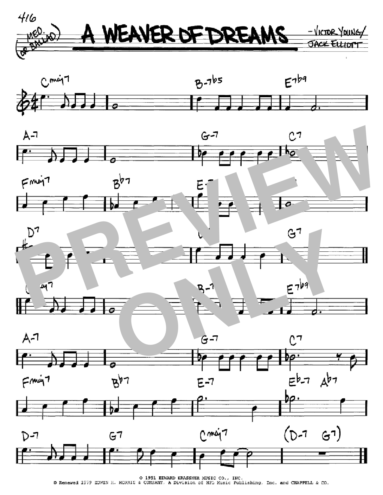 Download or print Victor Young A Weaver Of Dreams sheet music, chords and digital score arranged for Real Book – Melody & Chords – C Instruments. This Jazz score includes 1 page(s).