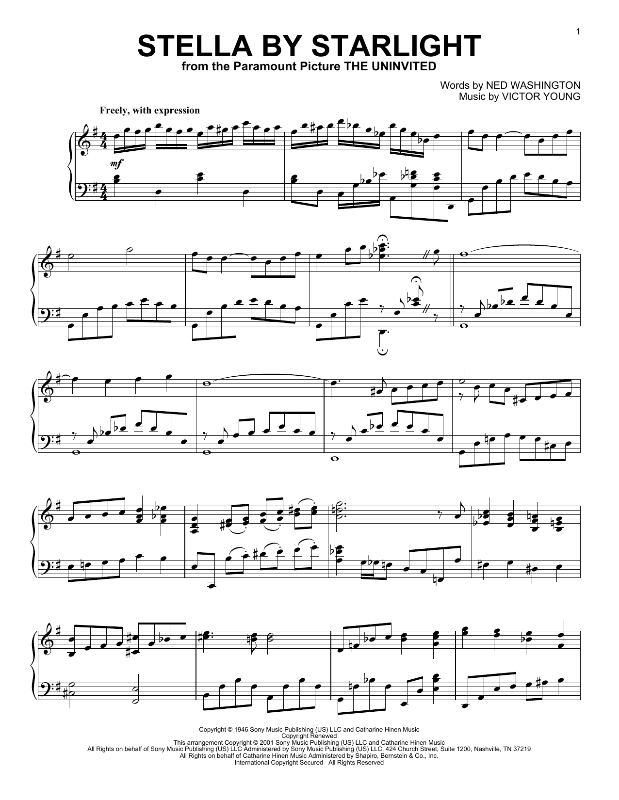 Download or print Victor Young Stella By Starlight (arr. Al Lerner) sheet music, chords and digital score arranged for Piano Solo. This Jazz score includes 2 page(s).