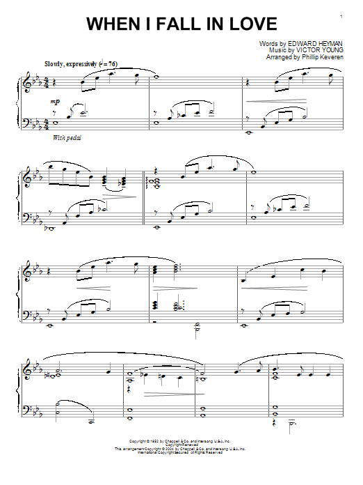 Download or print Victor Young When I Fall In Love (arr. Phillip Keveren) sheet music, chords and digital score arranged for Piano Solo. This Film/TV score includes 3 page(s).