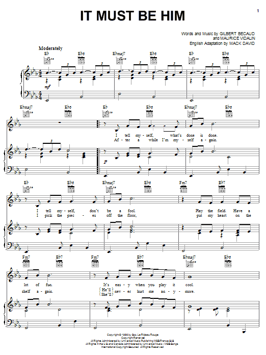 Download or print Vicki Carr It Must Be Him sheet music, chords and digital score arranged for Piano, Vocal & Guitar Chords (Right-Hand Melody). This Love score includes 3 page(s).